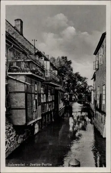 Ak Salzwedel in der Altmark, Jeetze, Häuser am Wasser
