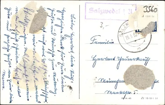 Zustand, siehe Scan, gelaufen, 1952 - ca 9 cm X 14 cm