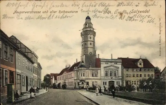 Ak Salzwedel in der Altmark, Neuperwerstraße, alter Rathausturm