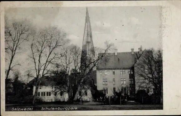 Ak Salzwedel in der Altmark, Schulenburgpark, Kirchturm
