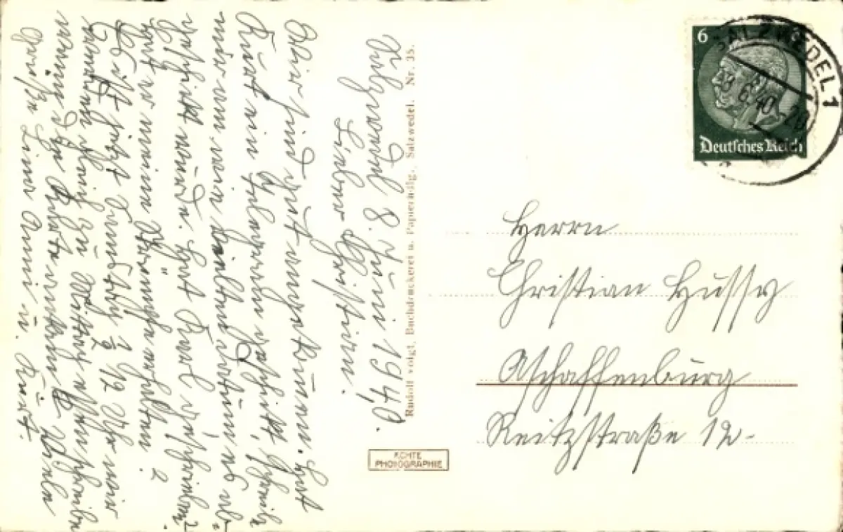 Zustand, siehe Scan, gelaufen, 1940 - ca 14 cm X 9 cm