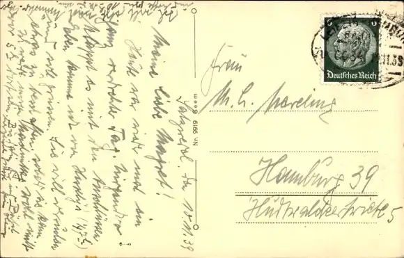 Zustand, siehe Scan, gelaufen, 1939 - ca 14 cm X 9 cm