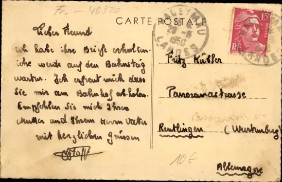 Zustand, siehe Scan, gelaufen, 1950 - ca 14 cm X 9 cm