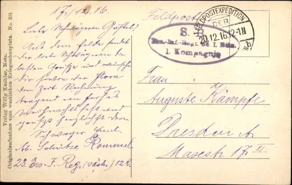 Zustand, siehe Scan, gelaufen, 1916 - ca 14 cm X 9 cm