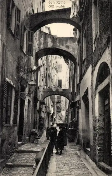 Ak San Remo Ligurien, Straßenpartie, Torbögen