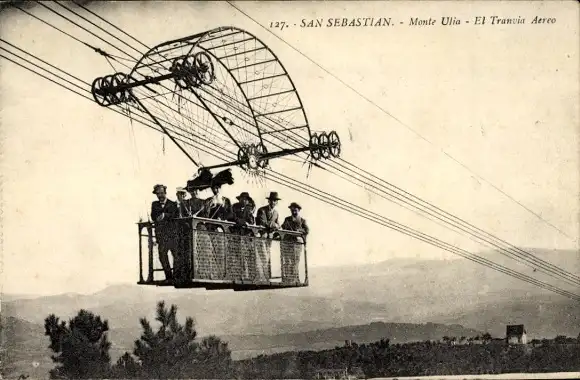 Ak San Sebastian Baskenland, Monte Ulia, Seilbahn mit Passagieren