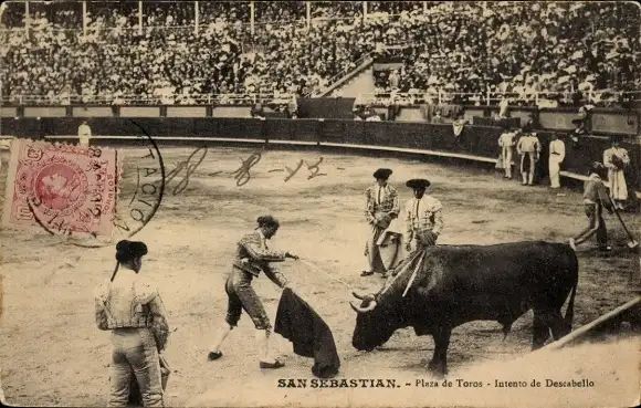 Ak San Sebastian, Stierkampfszene, Intento de Descabello