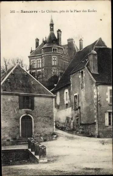 Ak Sancerre Cher, Le Chateau, pris de la Place des Ecoles