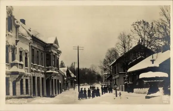 Ak Sandefjord Norwegen, Straßenpartie, Geschäft