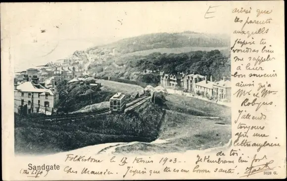 Ak Sandgate Kent England, Blick auf den Ort, Standseilbahn
