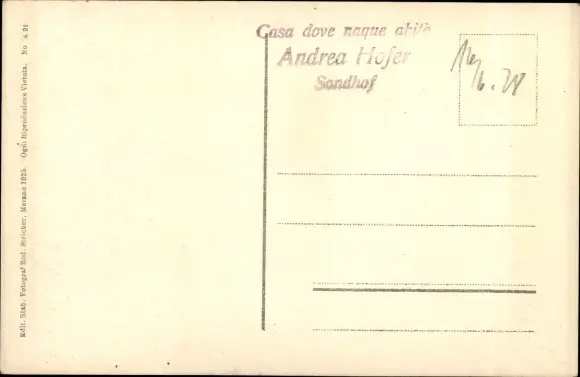 Ak Sandhof, Andreas Hofer, Standbild vor dem Geburtshaus