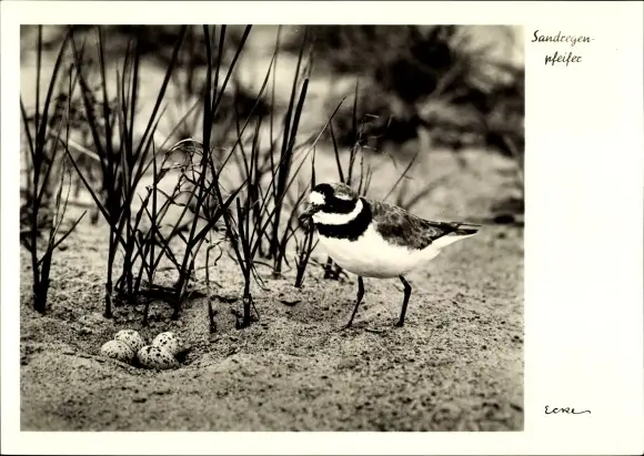 Ak Sandregenpfeifer am Gelege, Nest, Eier