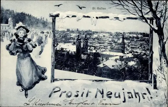 Ak Sankt Gallen Stadt Schweiz, Gesamtansicht, Neujahr