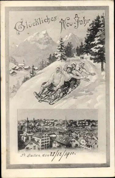 Ak Sankt Gallen Stadt Schweiz, Gesamtansicht, Neujahr