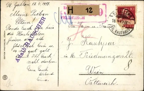 Zustand, siehe Scan, gelaufen, 1917 - ca 14 cm X 9 cm
