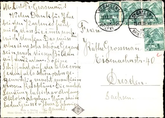 Zustand, siehe Scan, gelaufen, 1939 - ca 15 cm X 11 cm
