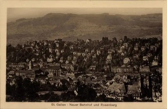Ak Sankt Gallen Stadt Schweiz, Neuer Bahnhof und Rosenberg
