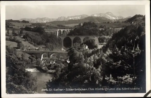 Ak Sankt Gallen Stadt Schweiz, Sitterbrücken, Säntiskette
