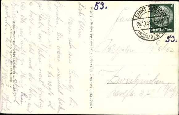 Zustand, siehe Scan, gelaufen, 1934 - ca 14 cm X 9 cm