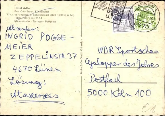 Ak Sankt Georgen im Schwarzwald, Hotel Adler
