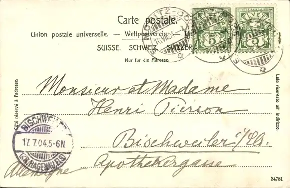 Zustand, siehe Scan, gelaufen, 1904 - ca 14 cm X 9 cm