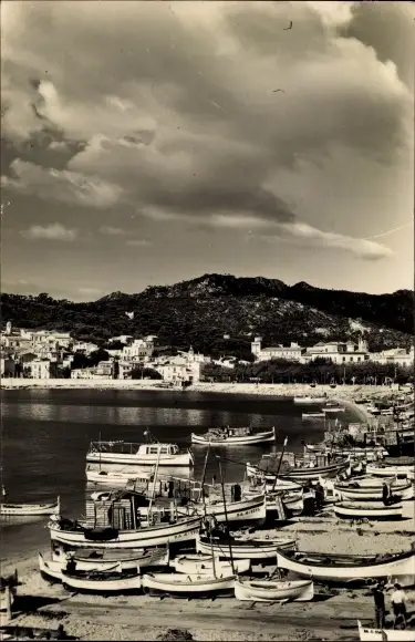Ak Sant Feliu de Guíxols Katalonien, Teilansicht, Boote am Strand