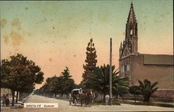 Ak Santa Fé Argentinien, Straßenpartie, Kirche