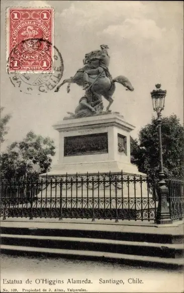 Ak Santiago de Chile, Estatua de O'Higgins Alameda