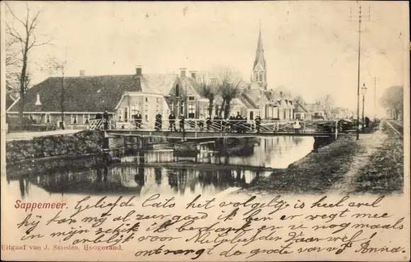 Ak Sappemeer Groningen Niederlande, Brücke, Kirche