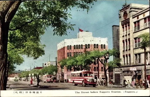 Ak Sapporo Präf. Hokkaido Japan, The Street before Sapporo Station, Autobus