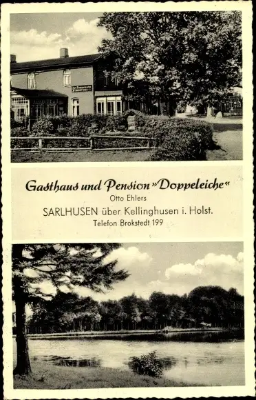 Ak Sarlhusen in Schleswig Holstein, Gasthof Doppeleiche, Uferpartie