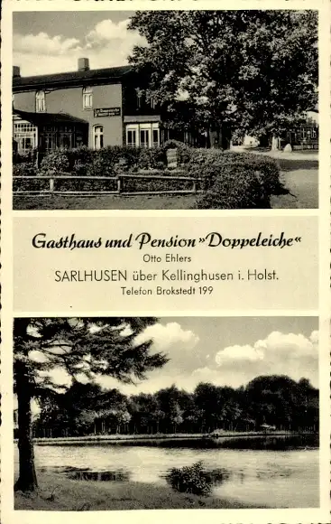 Ak Sarlhusen in Schleswig Holstein, Gasthof Doppeleiche, Uferpartie