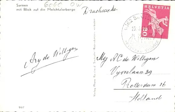 Ak Sarnen Kanton Obwalden, Gesamtansicht, Melchtalerberge