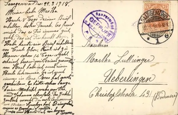 Zustand, siehe Scan, gelaufen, 1918 - ca 14 cm X 9 cm