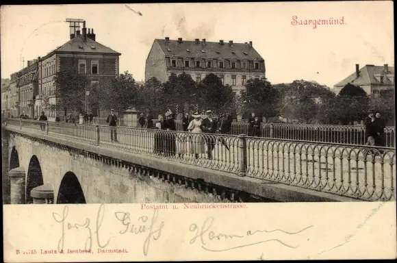 Ak Sarreguemines Saargemünd Lothringen Moselle, Postamt und Neubrückenstraße