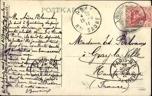 Zustand, siehe Scan, gelaufen, 1911 - ca 14 cm X 9 cm