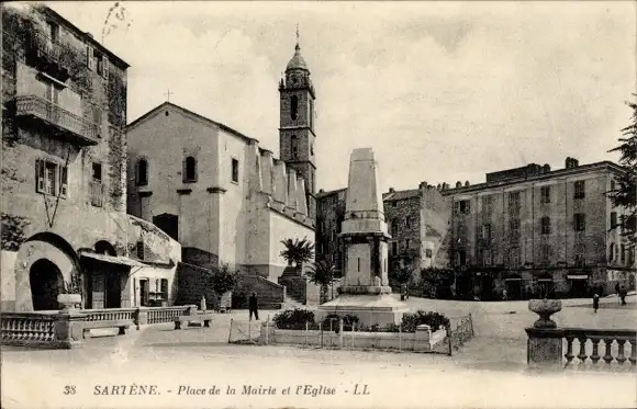 Ak Sartène Südkorsika, Place de la Mairie, Kirche