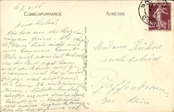 Zustand, siehe Scan, gelaufen, 1926 - ca 14 cm X 9 cm