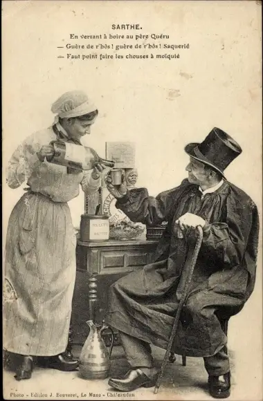 Ak Sarthe, Mann und Frau in Volkstrachten