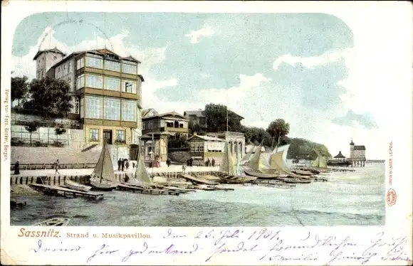 Ak Sassnitz Insel Rügen, Strand und Musikpavillon, Segelboote
