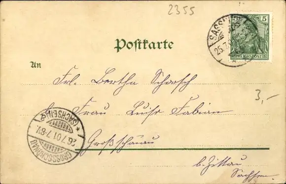 Zustand siehe Scan, 1893, gelaufen - ca 14 cm X 9 cm