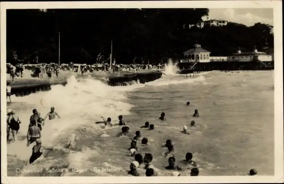 Ak Sassnitz auf Rügen, Badeleben, Badegäste, Strand, Wellen