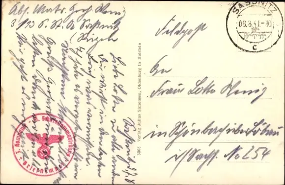 Zustand, siehe Scan, gelaufen, 1941 - ca 14 cm X 9 cm
