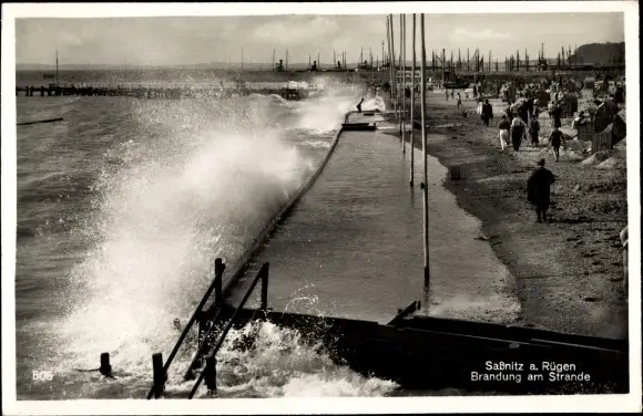 Ak Sassnitz auf Rügen, Brandung am Strand