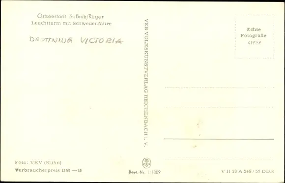 Ak Sassnitz auf Rügen, Schwedenfähre Drottning Victoria, Fährschiff, Leuchtturm auf der Mole