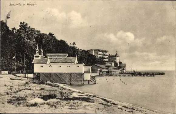 Ak Sassnitz auf Rügen, Strand, Seebrücke