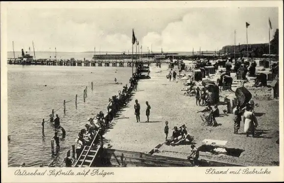 Ak Sassnitz auf Rügen, Strand, Seebrücke