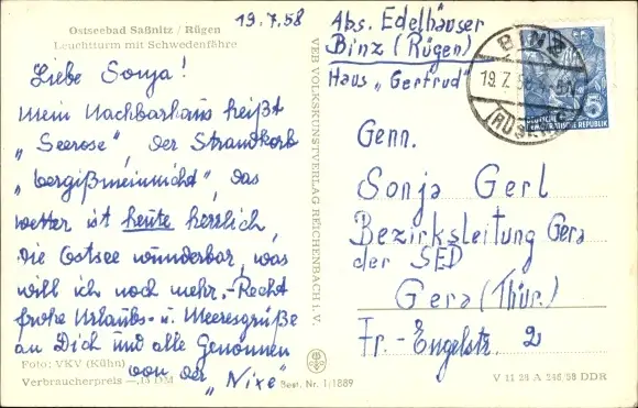 Zustand, siehe Scan, gelaufen, 1958 - ca 14 cm X 9 cm
