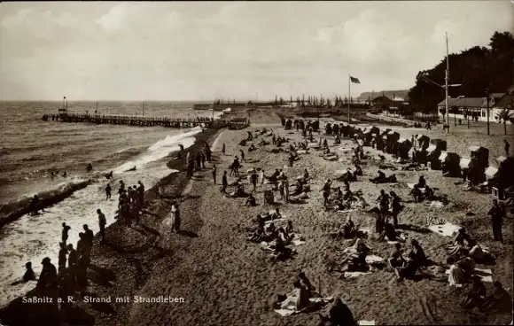 Ak Sassnitz auf der Insel Rügen, Strand mit Strandleben
