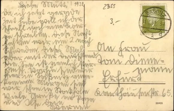 Zustand, siehe Scan, gelaufen, 1932 - ca 14 cm X 9 cm